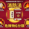 消防法における危険物の定義や第1類~第6類の分類については「消防法と危険物の定義をわかりやすく解説!第1~6類の分類も一気に理解」で詳しく解説しています。