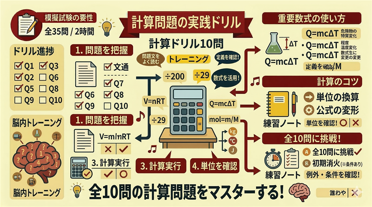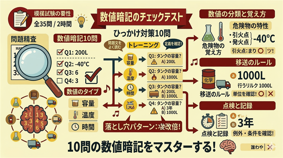 危険物取扱者試験で頻出の「ひっかけパターン」を10問でトレーニング。許可と届出のすり替え、以上と超えるの境界、引火点と発火点の入れ替えなど、受験者がよく間違えるポイントを集中的に練習しましょう!